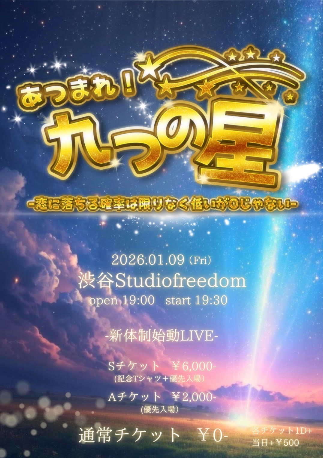 1部 OPEN12:00 / START12:30 2部OPEN17:00 / START17:30